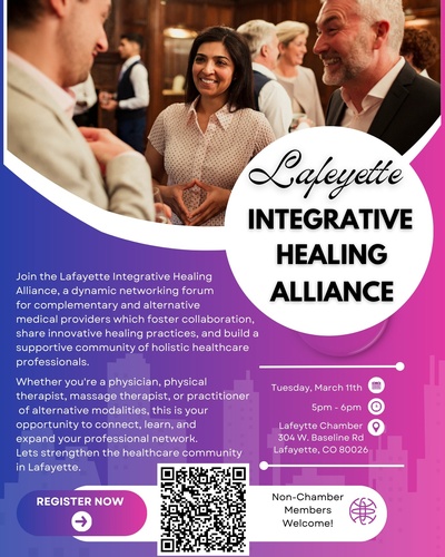Join the Lafayette Integrative Healing Alliance, a dynamic networking forum for complementary and alternative medical providers which foster collaboration, share innovative healing practices, and build a supportive community of holistic healthcare professionals. Whether you're a physician, physical therapist, massage therapist, or practitioner of alternative modalities, this is your opportunity to connect, learn, and expand your professional network. Let’s strengthen the healthcare community in Lafayette.